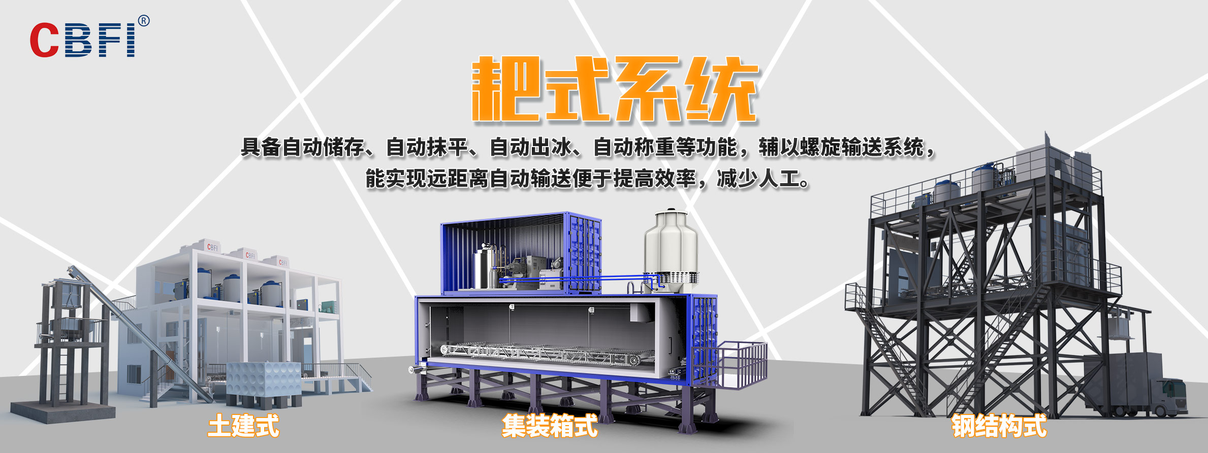 廣州冰泉制冷設(shè)備有限責(zé)任公司(商標(biāo)CBFI),大型氟制冷制冰設(shè)備行業(yè)開拓者,是一家立足國內(nèi)、面向全球,集大型食用制冰設(shè)備、大型工業(yè)制冰設(shè)備、高端商用制冰機(jī)、成套制冰系統(tǒng)的研發(fā)、設(shè)計(jì)、制造、銷售、售后服務(wù)于一體的創(chuàng)新創(chuàng)業(yè)型高新技術(shù)企業(yè),是大型冰廠和冷庫工程解決方案服務(wù)商。